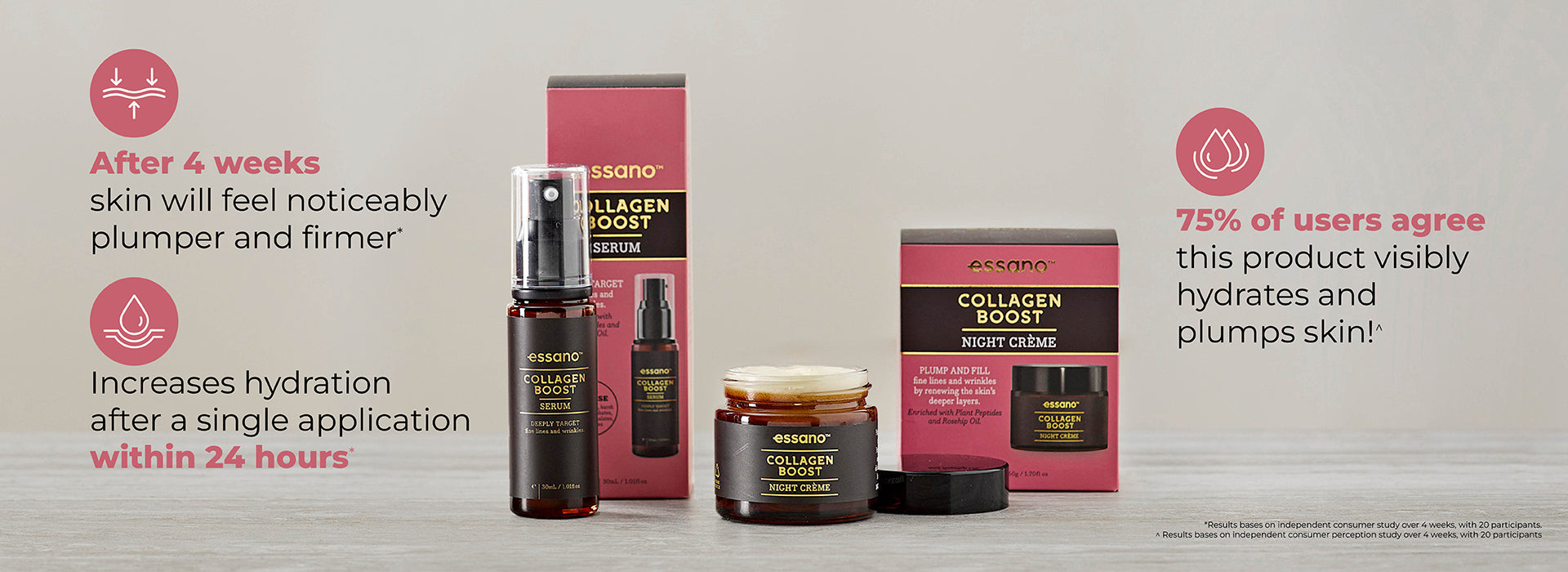 "The entire essano Collagen Boost range is designed to boost your skin’s natural collagen production to help reduce the visible signs of ageing. The range is enriched with plant-based extracts to improve elasticity and firmness, helping women to age positively and look youthful for longer."